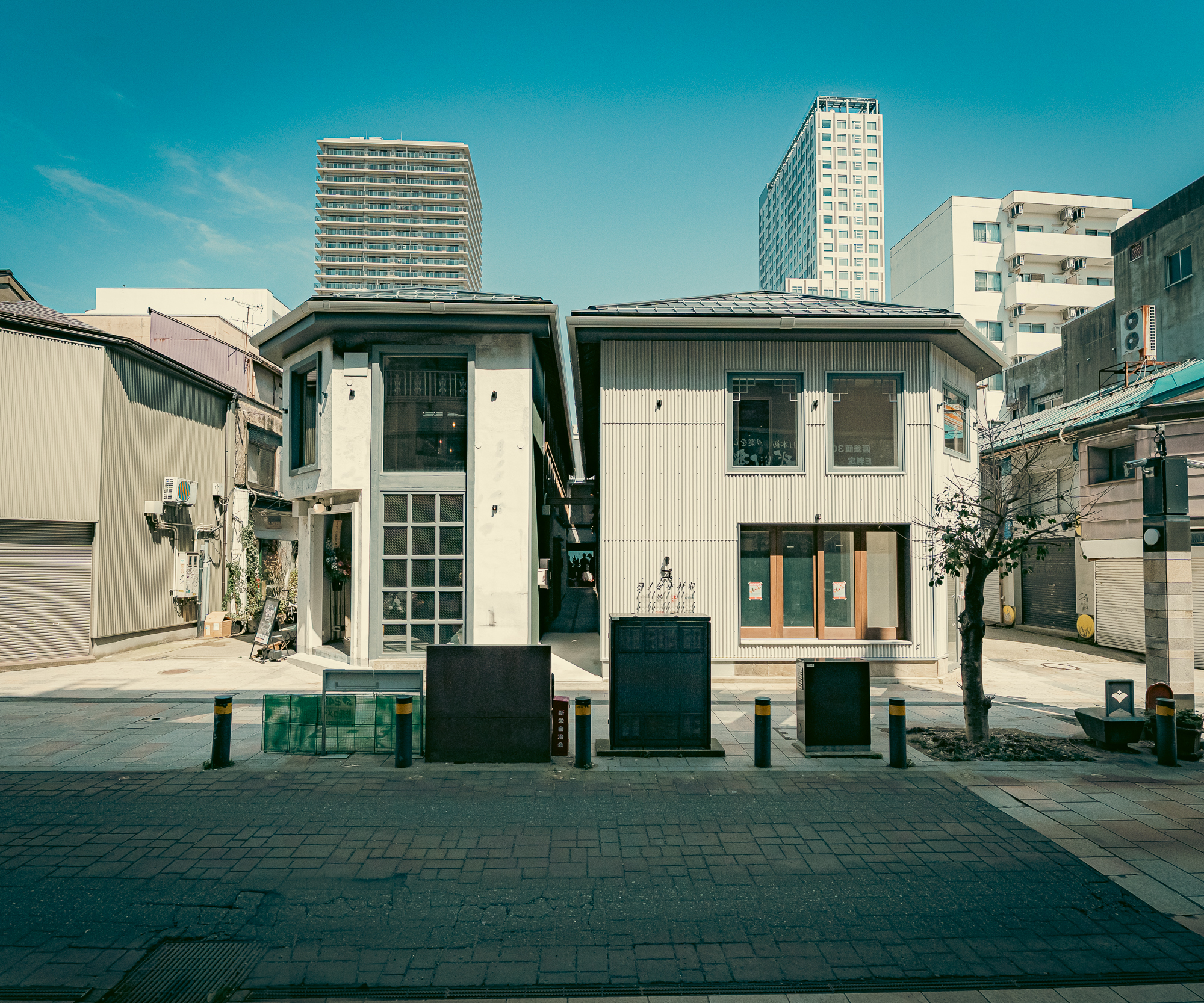 - 福井地震後の復興区画整理で誕生した新栄商店街内に位置する600㎡を超える大規模長屋のリノベーションプロジェクト。下記4点の計画検討を担った。
